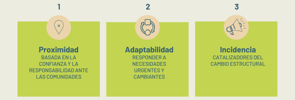 “Las convocatorias abiertas son una metodología importante para nosotras porque nos posicionan como una organización accesible: no necesitas estar conectada con nadie para recibir apoyo. También son una fuente de información increíblemente valiosa, porque cada propuesta cuenta una historia: qué desafíos enfrenta una comunidad y qué estrategias está utilizando para responder.”