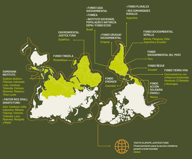 La Alianza reúne a un grupo diverso de fondos consolidados, entre ellos Fundo Casa Socioambiental (Brasil), Fondo Acción Solidaria – FASOL (México), Fondo Tierra Viva (Centroamérica), Samdhana Institute (Sudeste Asiático), Instituto Sociedade, População e Natureza (ISPN) / Fundo Ecos y FunBEA (Fundo Brasileiro para Educação Ambiental), ambos en Brasil. También la conforman fondos en expansión con fuerte presencia regional, como el Fundación Socioambiental Semilla en Bolivia, el Fondo Socioambiental del Perú, el Fondo Emerger en Colombia, el Fondo Ñeque en Ecuador, el Fundo Tindzila en Mozambique, el Environmental Justice Fund (EJF) en Sudáfrica, Red Comunidades Rurales y el Fondo Socioambiental Plurales en Argentina, el Pastor Rice Small Grant Fund en el Sudeste Asiático y el Youth Climate Justice Fund, nuestro único fondo global y temático, que apoya iniciativas lideradas por jóvenes.